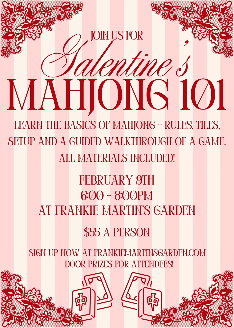 Ā Join us for a fun and festive Valentineās Mahjong 101 at Frankie Martinās Garden!Ā